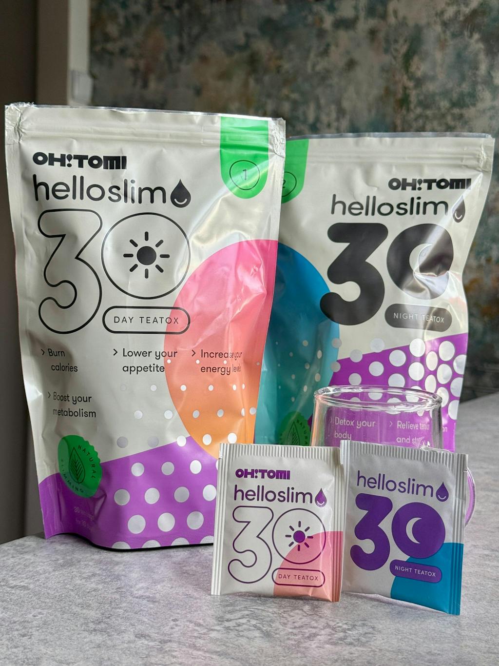 Detoks organizmu 30-dniowy spalacz tłuszczu herbaty na dzień i na noc Hello Slim Oh!Tomi