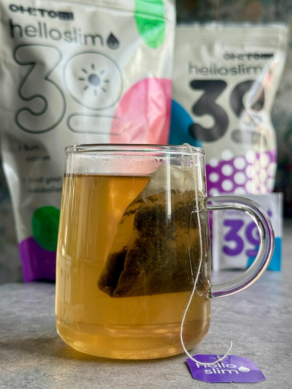 Zestaw herbat Hello Slim to dwustopniowy program detoksykacyjny, który wspiera naturalne procesy oczyszczania organizmu oraz działa jak naturalny spalacz tłuszczu. Poranna herbata zawiera zieloną herbatę, yerba mate i guaranę, które pobudzają metabolizm i dodają energii. Wieczorna kompozycja z mięty, trawy cytrynowej i imbiru pomaga się zrelaksować i wspiera trawienie. Regularne stosowanie herbat Hello Slim może przyczynić się do poprawy funkcjonowania układu trawiennego i ogólnego samopoczucia.