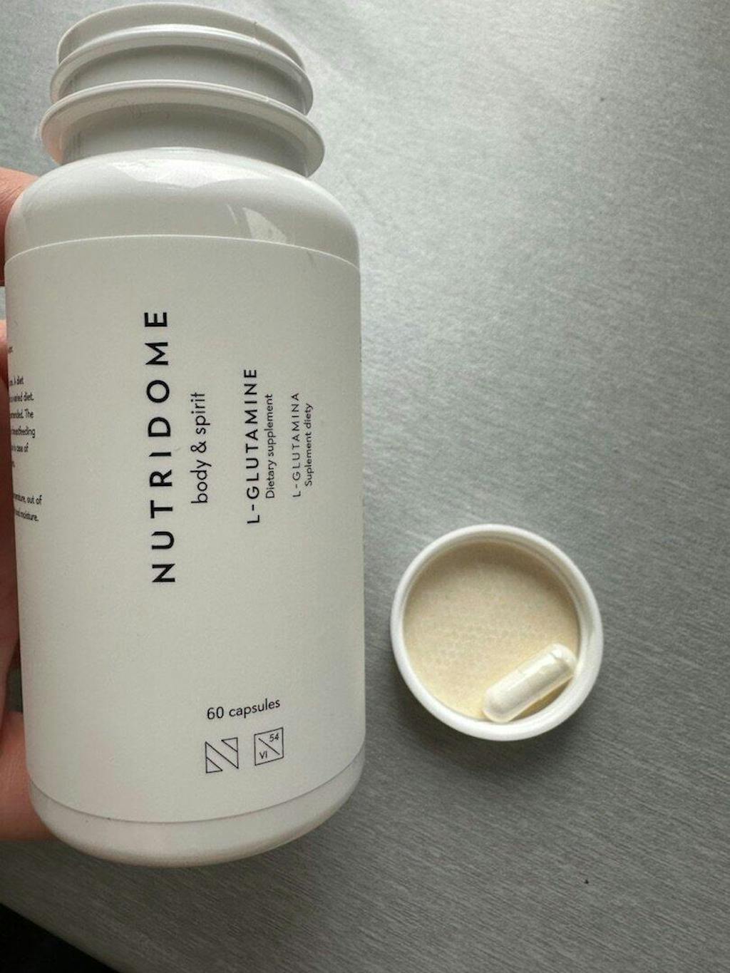 L-glutamina na regenerację i budowę mięśni po treningu oraz wsparcie odporności Nutridome 60 szt.