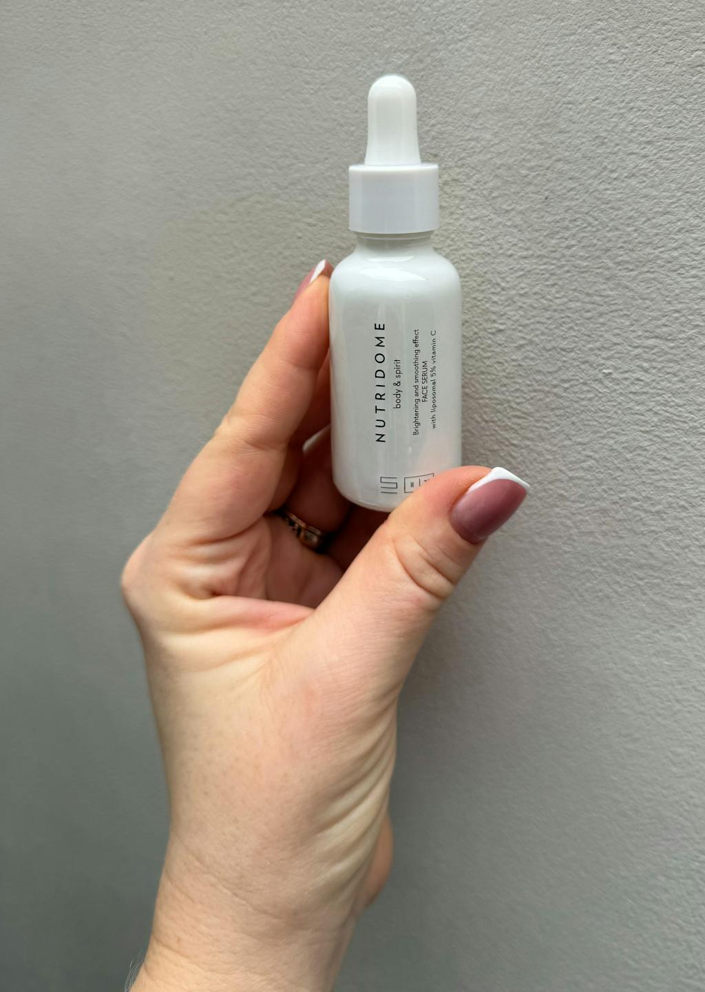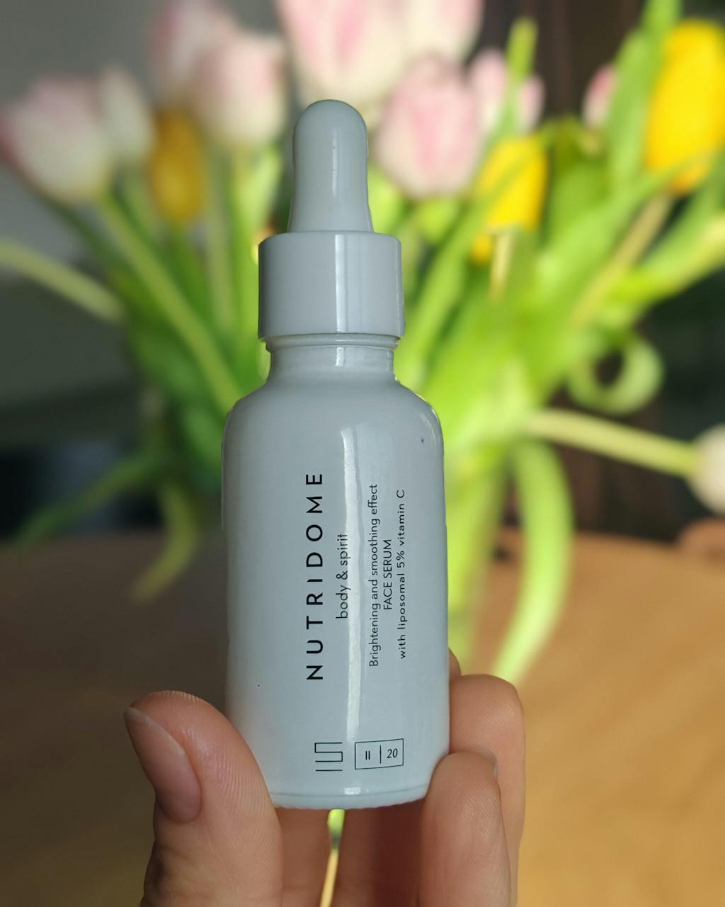 Serum z witaminą C do twarzy marki NUTRIDOME powstało w wyniku połączenia kilku substancji aktywnych, m.in. liposomalnej witaminy C, pantenolu, ekstraktu z kwiatów lilii wodnej oraz alg czerwonych. W efekcie otrzymano formułę, która przywraca skórze blask, rozjaśnia przebarwienia i pomaga zachować młody wygląd cery.
