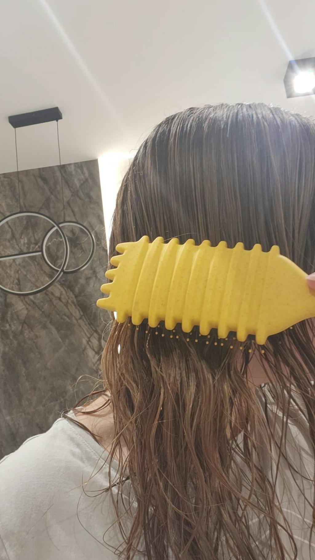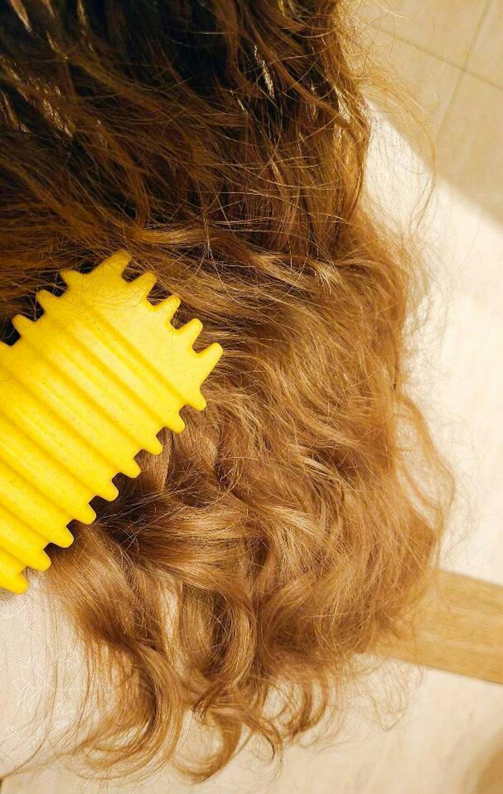 szczotka delikatnie rozczesuje pasma, krem podkreśla skręt i eliminuje puszenie